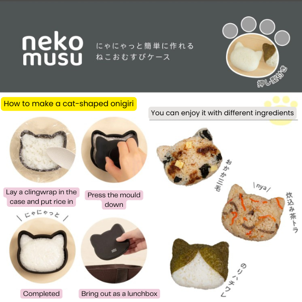 Comes with a convenient press mold, you can easily make cat-shaped rice balls by wrapping rice in plastic wrap and putting it in the case. Each onigiri is about 200ml, about 1.5x the volume of the onigiri bought from convenience store!